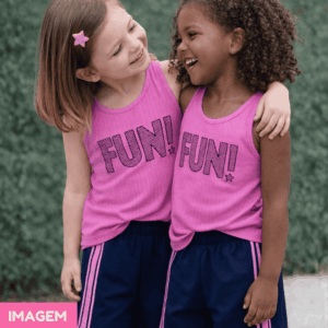 A Blusa Infantil Feminina Kyly possui modelagem soltinha, estampa rotativa colorida e acabamento nas alças em debrum.
