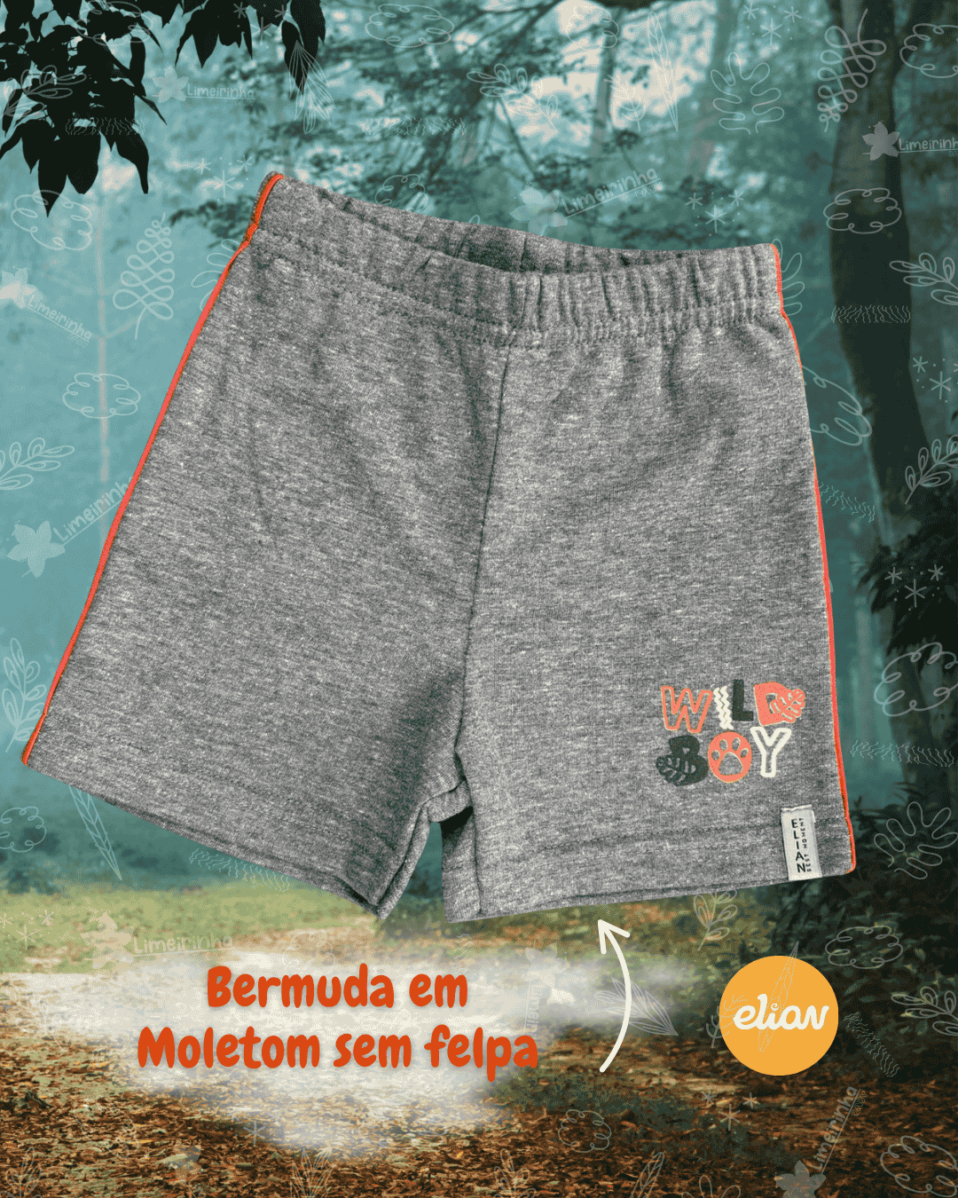 Shorts com elástico em moletom sem felpa, detalhe na lateral. ❤️