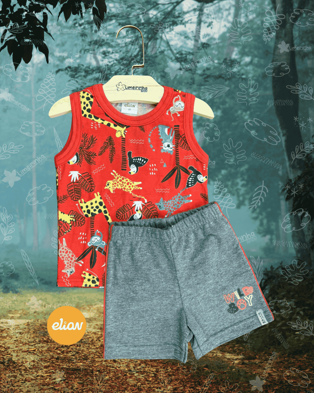 Conjunto Primeiros Passos Elian com regata Safari