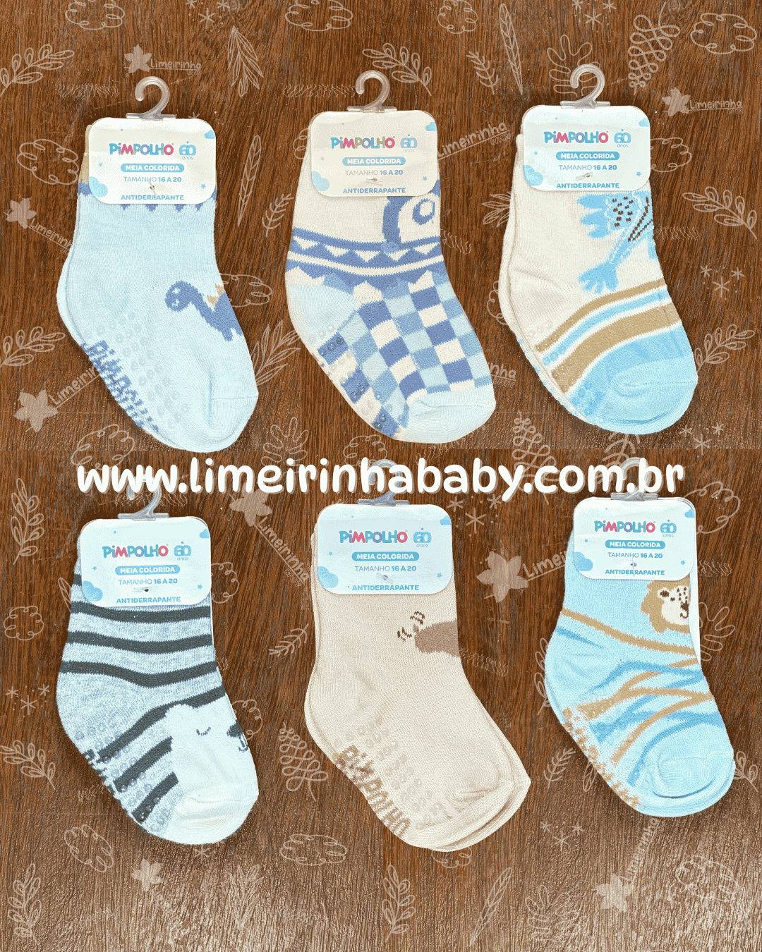 Meia antiderrapante cano alto Pimpolho 16-20 meninos đ§Š