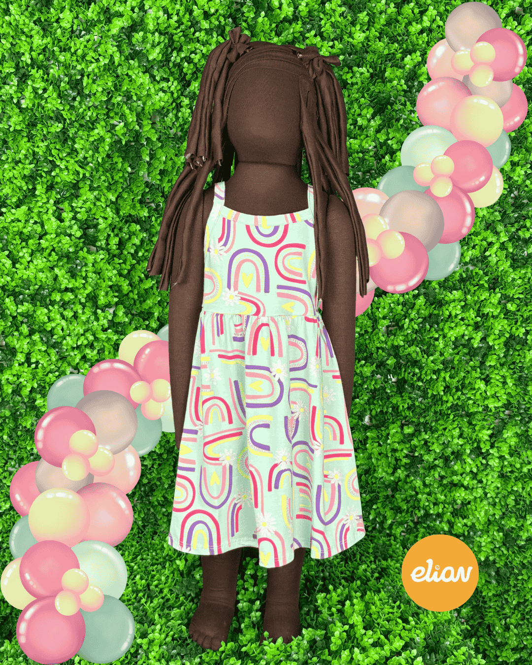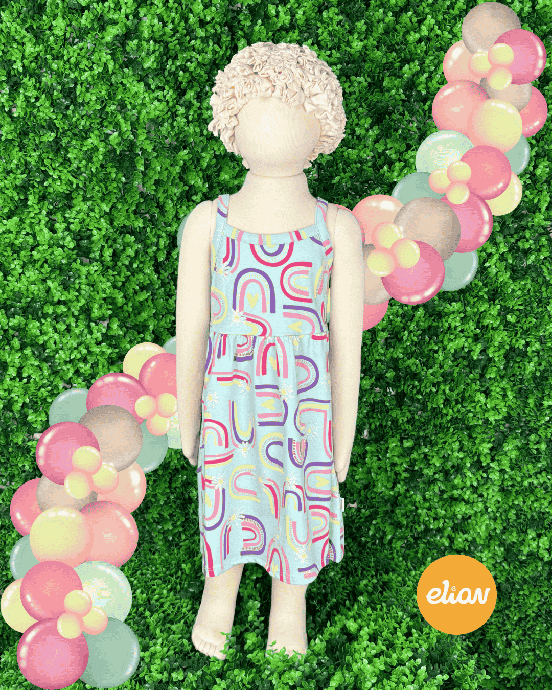 Vestido Elian Arco-Íris e flores com glitter 🌈 💛 🌼